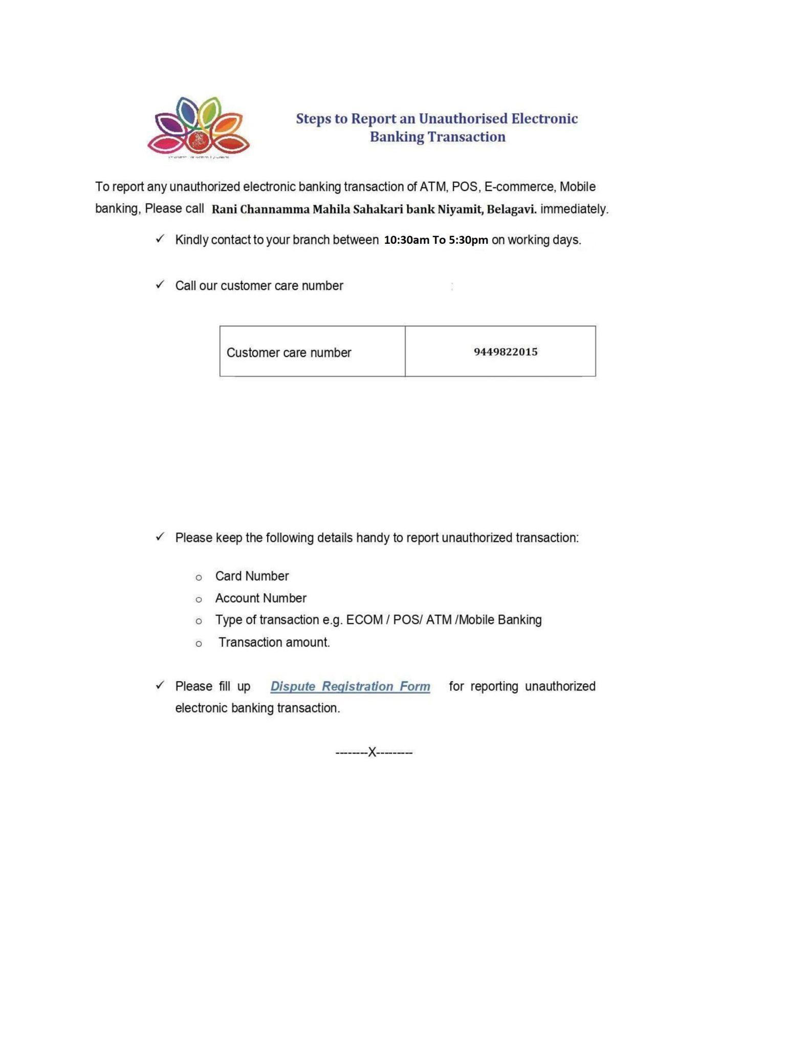 Rani Channamma Mahila Sahakari Bank Niyamit